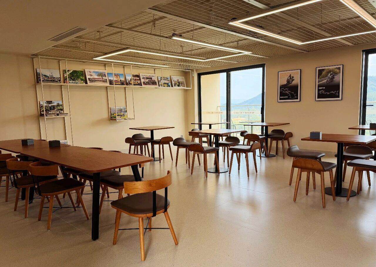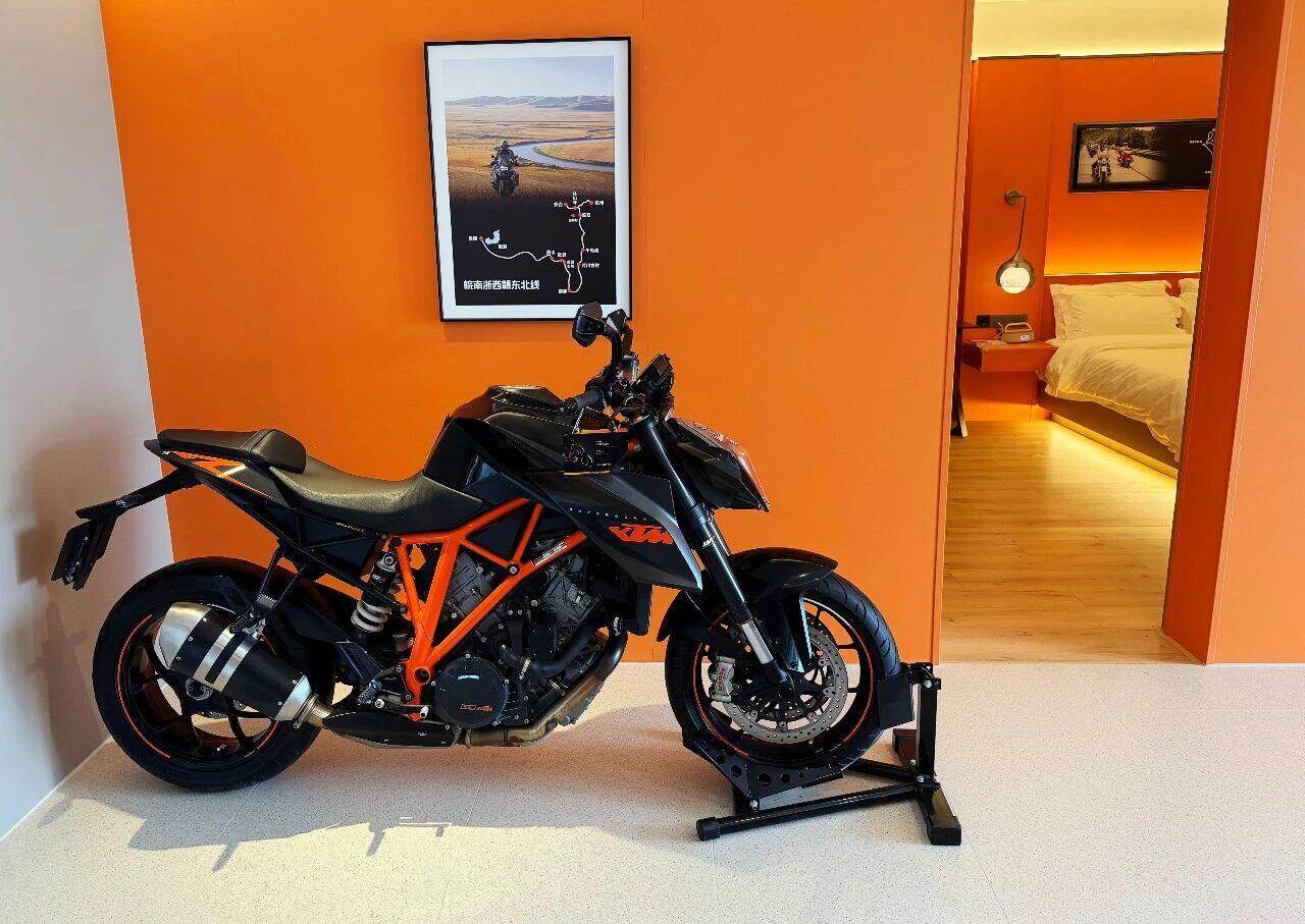 走进酒店,机车元素无处不在。落地玻璃内的“机车幕墙”陈列着各式锃亮机车,大堂的机车零件艺术装置、走廊里的骑行路线地图、餐厅墙上的机车文化照片……让人仿佛置身于一座鲜活的“机车博物馆”。